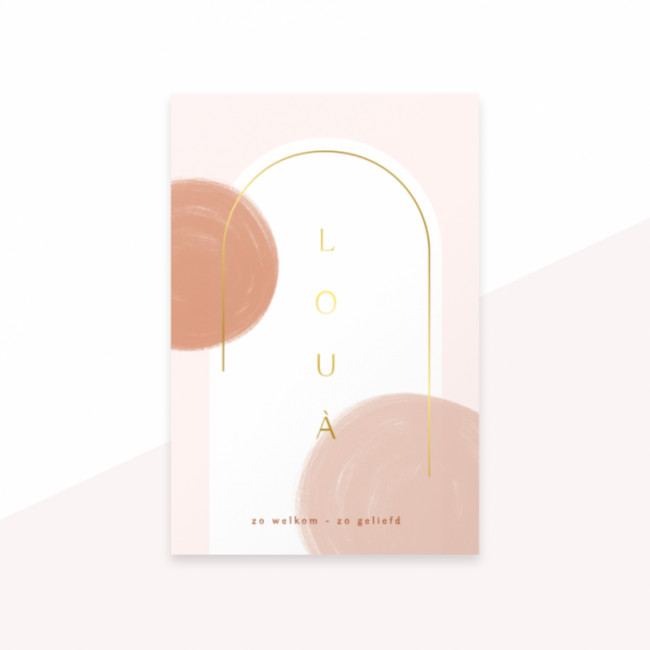 Profiel geboorte kaartje met bakfiets en baby meisje in mooie aanpasbare kleuren. Leuke goudkleurige accenten.