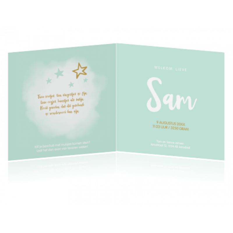 Aquarel geboortekaartje met ster en naam in het mint groen