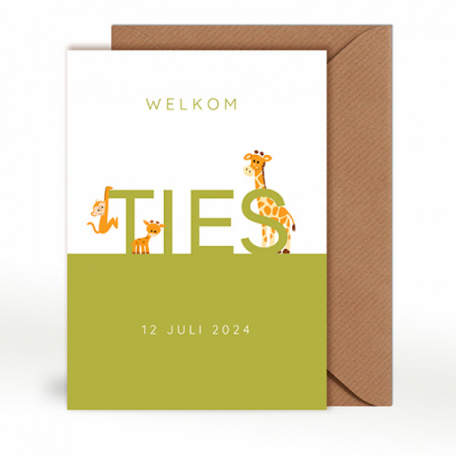 Beige geboortekaartje met bruine tekening van een beer en de naam in hoogglans bruinrood. Pas de kaart eenvoudig aan met de editor zoals jij dat wilt.