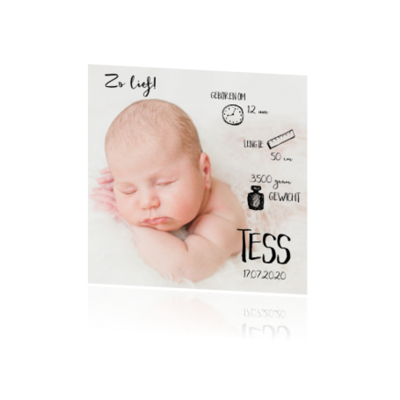 Krijg jij een meisje? Van harte gefeliciteerd. Dit geboortekaartje valt echt op als het bij je familie en vrienden door de brievenbus valt. De foto van jouw baby staat groot op de voorkant en op de achterkant zet je jouw geboortetekst.