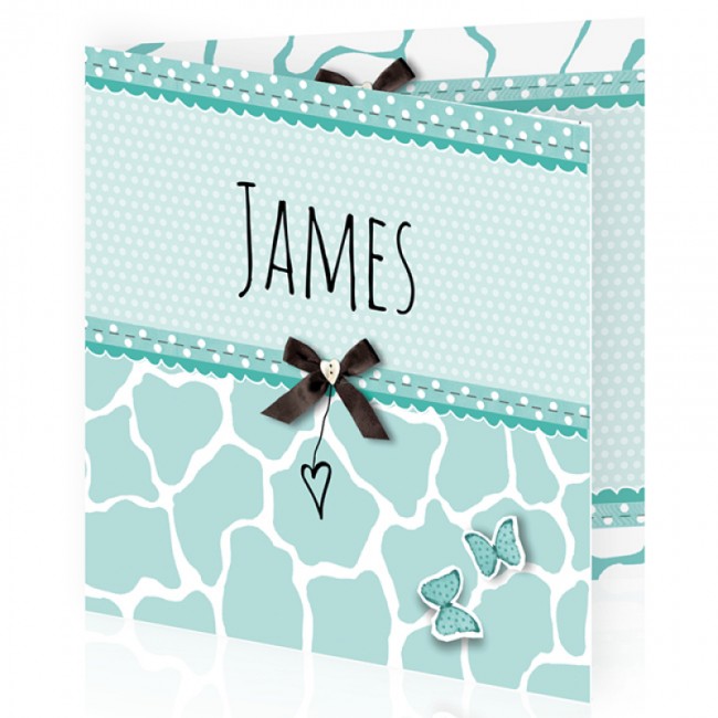 Schattig staand geboortekaartje met lief getekend jongetje op de wereldbol. Populaire geboortekaart van JilleJille om zelf te maken, pas zelf de kleuren en teksten aan.