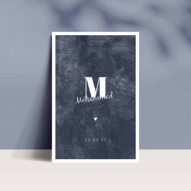 Hip enkel geboortekaartje voor een jongen met geometrische vlakken en kraft.