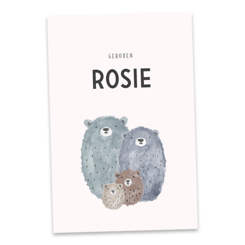 Lief geboortekaartje met handgeschilderde berenfamilie. Vul jullie eigen gegevens in, zo leuk om de naam van jullie kindje op het kaartje te zien staan!- en maak het kaartje helemaal naar jullie eigen wens. Heb je een vraag of kom je er niet uit, mail dan gerust!