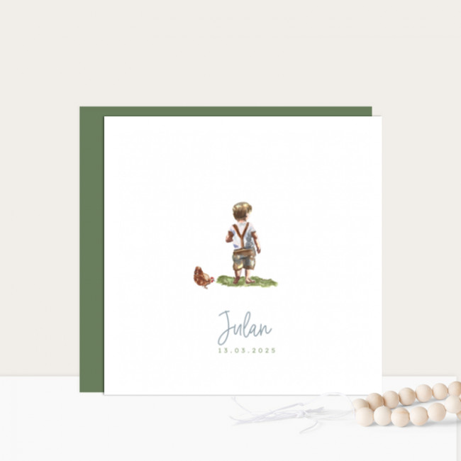 Echt mooi, een geboortekaartje op handgeschept papier. Pure ambacht zit in dit papier. Elk velletje wordt een voor een gemaakt. Hierdoor krijgt je kaartje van de mooie geschepte randen. Het ontwerp op dit geboortekaartje mag dan juist heel minimalistisch zijn. Zoals hier met lieve bosdiertjes zoals een hertje, vosje en eendje.