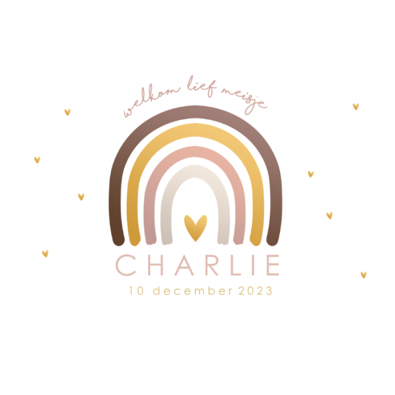 Geboortekaartje baby meisje regenboog herfsttinten.