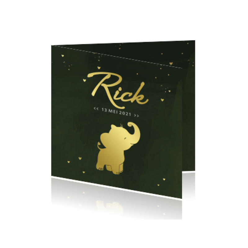 Geboortekaartje baby jongen olifant trendy color goudfolie