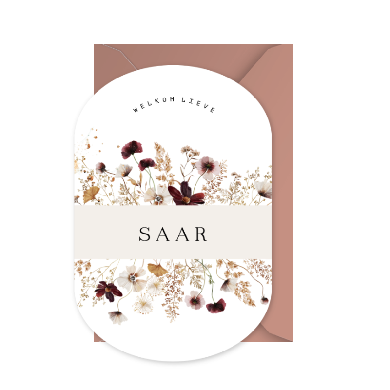 Hip gestanst geboortekaartje met bloemen voor een meisje