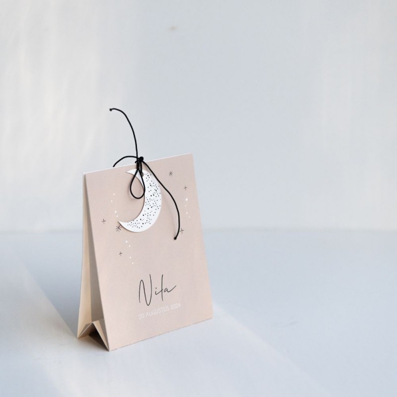 Geboortekaartje in de vorm van een tentkaartje, tipi. Superleuk om te versturen want dit kaartje popt uit de envelop. En zet heel leuk neer bij alle ontvangers. Zo blijft jullie geboortekaartje nog meer een blijvende herinnering. Je kan het kaartje zelf aanpassen in de ontwerptool en een (gratis) proefkaartje bestellen!
