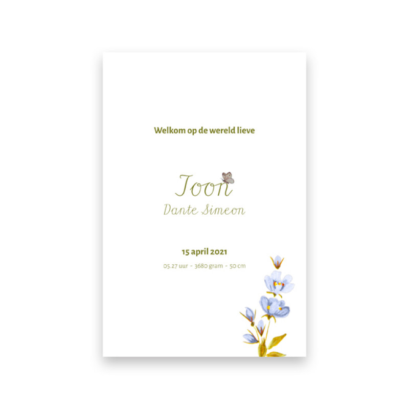 Lief nostalgisch geboortekaartje met een kindje, bloemen en een vlinder. In de editor kun je het kaartje eenvoudig aanpassen naar je eigen wensen. Heb je een vraag of kom je er niet uit, mail gerust!