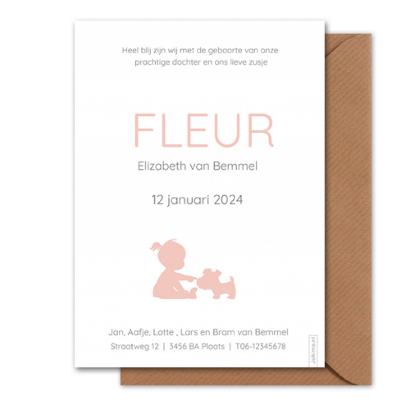 Stoer en stijlvol geboortekaartje voor een vierde kindje. Trendy door zijn strakke vormgeving. Alle kinderen zijn qua geslacht heel makkelijk zelf aan te passen.