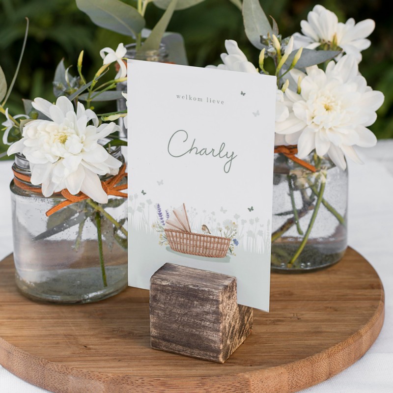 Op zoek naar een lieflijk geboortekaartje in zachte pasteltinten? Ga voor dit schattige kaartje met wiegje in een zachtgroen bloemenveld. Een klein roodborstje zit op het wiegje en eromheen vliegen allerlei kleine vlindertjes. Een perfect ontwerp voor een lentekindje! Bestel eens een proefdruk en bekijk dit geboortekaartje in gedrukte vorm.