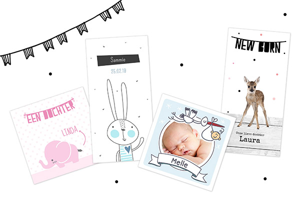 Laten we beginnen met de laatste trend: onze nieuwe geboortekaartjes zijn met een label! In onze webshop vind je speciale geboortekaarten waar speciaal ruimte is gemaakt voor een label. Daarnaast hebben we veel verschillende soorten labels, in alle kleuren en maten. Als jouw kleur er toch net niet bij zit, is dat geen probleem want die kan je zelf aanpassen in de ontwerptool. Er zijn labels met quotes, datum, gewicht en lengte, naam en misschien wel de leukste: met een foto. De keuze is dus reuze.