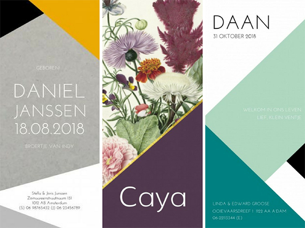 Net als mode, muziek, babynamen en het interieur zijn ook geboortekaartjes onderhevig aan trends. Een typische trend van dit moment is; het geometrische design.